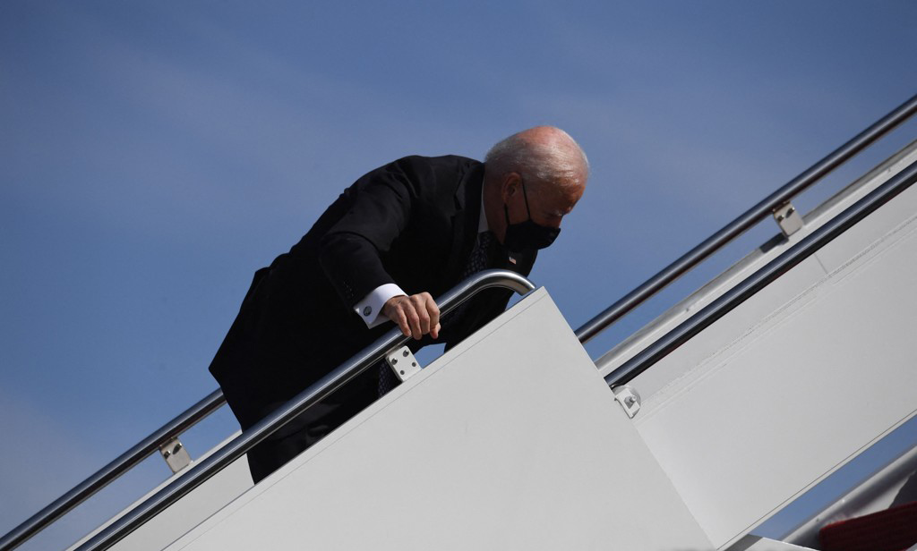 조 바이든 미국 대통령이 에어포스원에 오르다 발을 헛디디며 중심을 잃는 일이 벌어졌다.