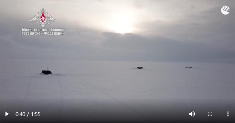 두께 1.5m의 북극해 얼음 뚫고 수면위로 올라온 3척의 러시아 핵잠수함. [러시아 국방부 동영상 캡처]