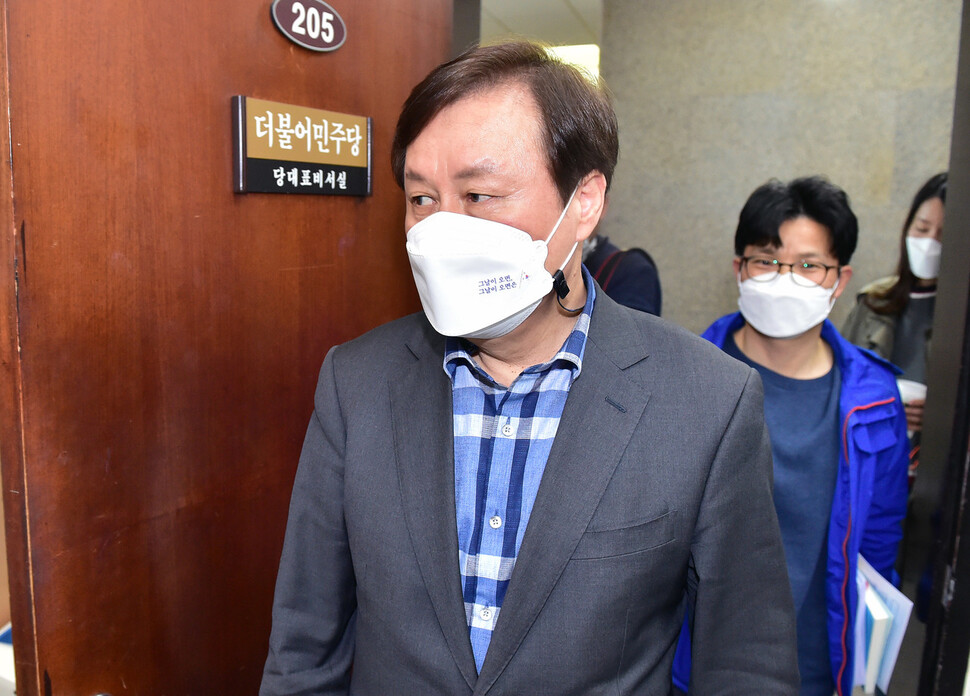 더불어민주당 대표 직무대행을 맡은 김태년 원내대표가 8일 국회에서 기자회견을 열어 4·7 재보궐선거 참패에 책임을 지고 지도부가 총사퇴하겠다고 밝혔다. 민주당은 원내대표와 당대표 경선을 최대한 앞당겨 실시하기로 했다.