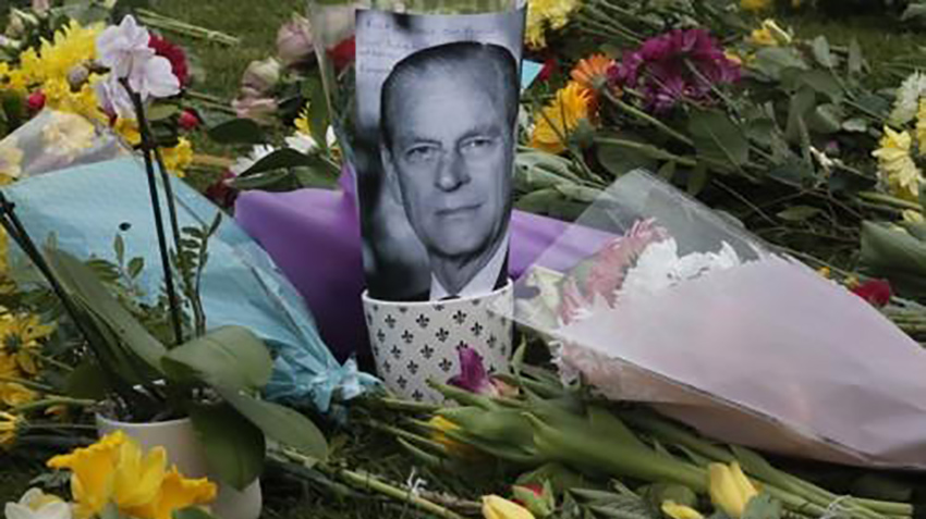 엘리자베스 2세 여왕 남편 필립공을 추모하는 꽃다발과 사진 : 10일(현지시간) 영국 윈저성 앞에 전날 별세한 영국 엘리자베스 2세 여왕의 남편 필립공을 기리는 꽃다발이 쌓여있다.