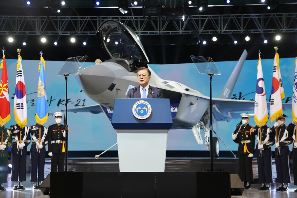 문재인 대통령이 오는 2032년까지 국내 기술진 주도로 개발한 한국형 전투기(KF-X) 120대를 실전에 배치하겠다고 밝혔다. 문 대통령은 또한 이 전투기 명칭을 ‘KF-21 보라매'라고 공식화했다.