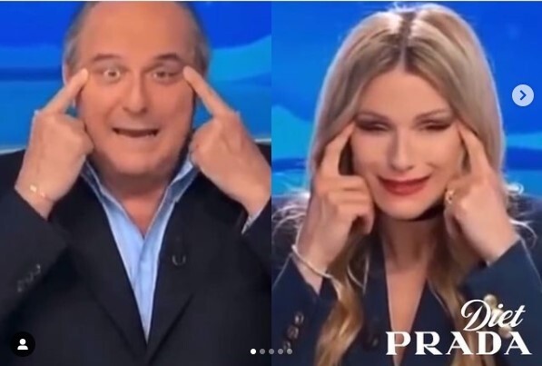 방송 중 눈찢기하는 이탈리아 TV 프로그램 진행자. ‘다이어트 프라다’ 인스타그램 갈무리. 연합뉴스
