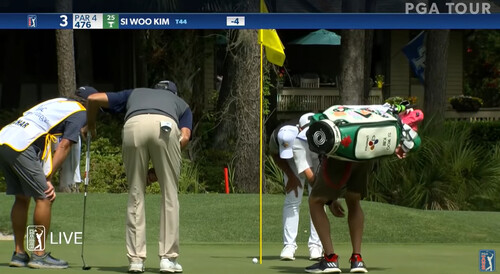 김시우가 피지에이(PGA) 투어 RBC헤리티지 오픈 3라운드 3번홀에서 홀 가장자리의 볼을 살펴보고 있다. PGA 투어 유튜브 갈무리