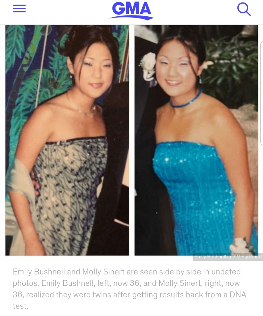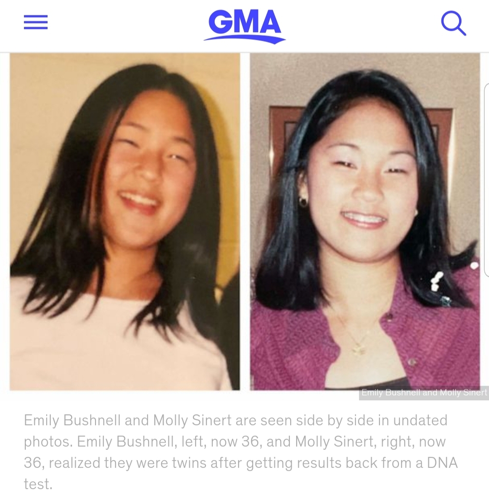 36년 전 미국의 서로 다른 가정으로 입양됐던 한국계 일란성 쌍둥이 자매가 우연히 비슷한 시기에 유전자 검사를 받았다가 극적으로 상봉하는 영화 같은 일이 일어났다.