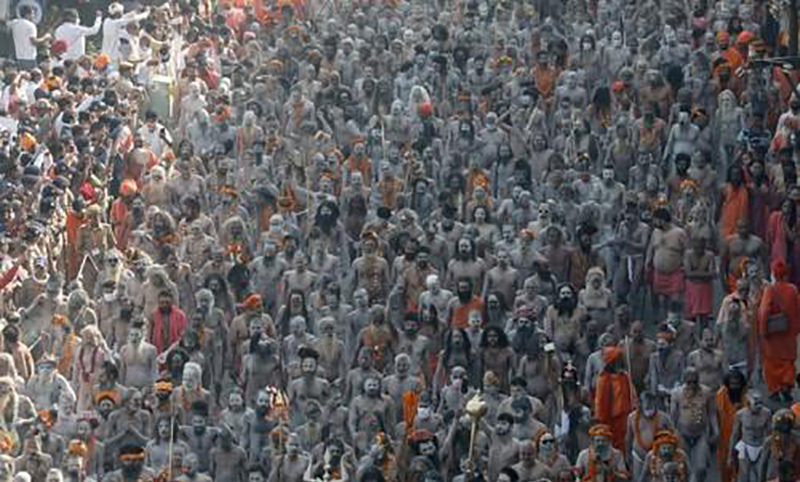 이 사진은 입수(入水)를 기다리는 힌두교 수행자들의 모습입니다. 조금 과장해 표현하면 바늘 하나 꽂을 틈이 없을 정도로 빼곡해 보입니다.