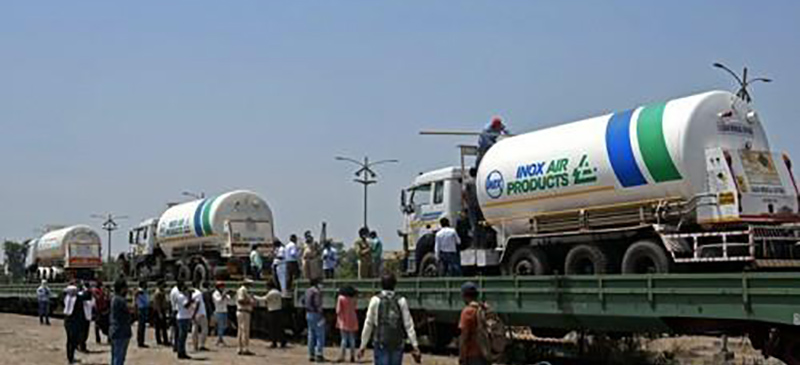 당국은 산소 공급을 위해 열차도 투입하고 산업용도 의료용으로 돌리고 있습니다.