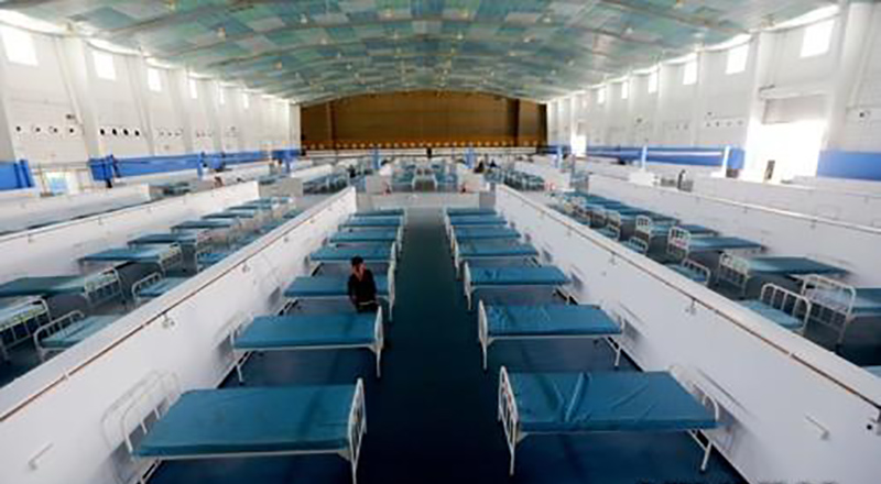 4월 21일 인도 아메다바드에서 컨벤션센터를 코로나19 환자용 시설로 개조한 모습. [신화=연합뉴스]