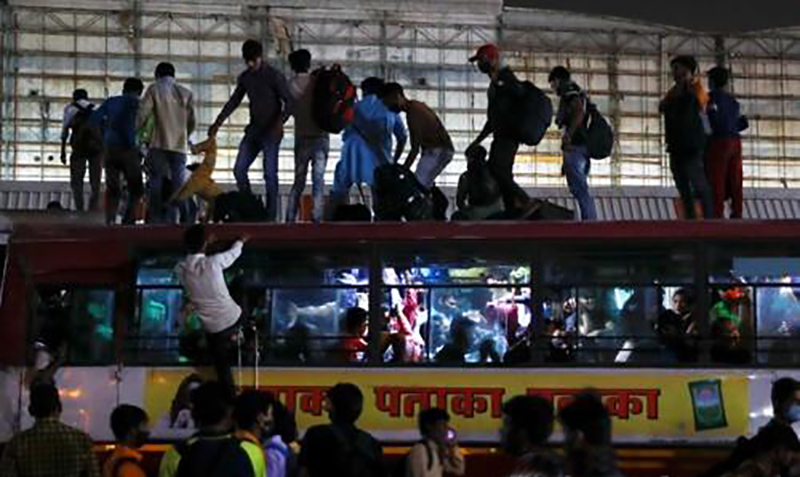곳곳에서 봉쇄령이 내려지자 이주노동자들이 도시 탈출에 나섭니다. 봉쇄 기간에 일자리를 잃고 생계가 어려워질 수 있다고 생각한 것이죠. 얼마나 급했는지 만원 버스의 지붕에까지 올라갑니다.