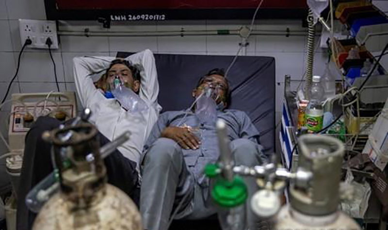 인도의 코로나19 확진자가 폭발적으로 늘면서, 치료에 필요한 산소와 치료제가 암시장에서 10배 이상 높은 가격에 거래되는 등 환자 치료에 비상이 걸렸다.