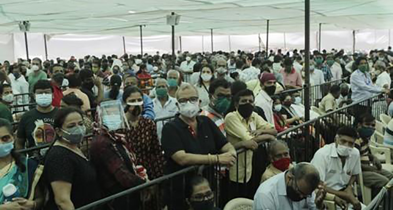 4월 24일 뭄바이의 코로나19 백신 센터에서 접종을 기다리는 주민. [AP]