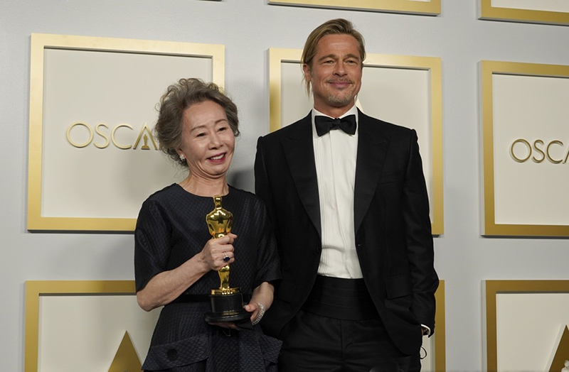 브래드 피트는 이날 시상식에서 여우조연상 시상자로 무대에 올라 후보를 소개한 뒤 수상자로 윤여정을 호명했다.