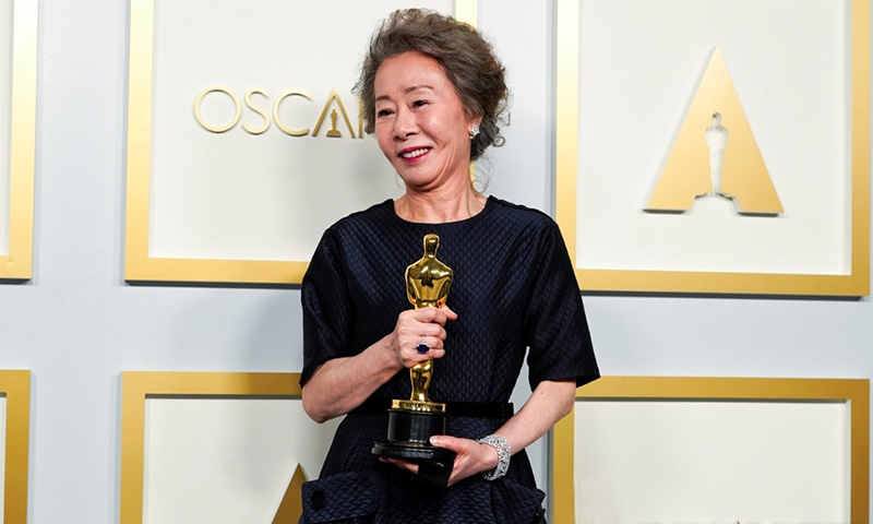 더 타임스는 여우조연상을 받은 윤여정과 함께 남·녀 주연상 수상자가 함께 있는 사진을 올리고 수상소감을 상세히 전했다.