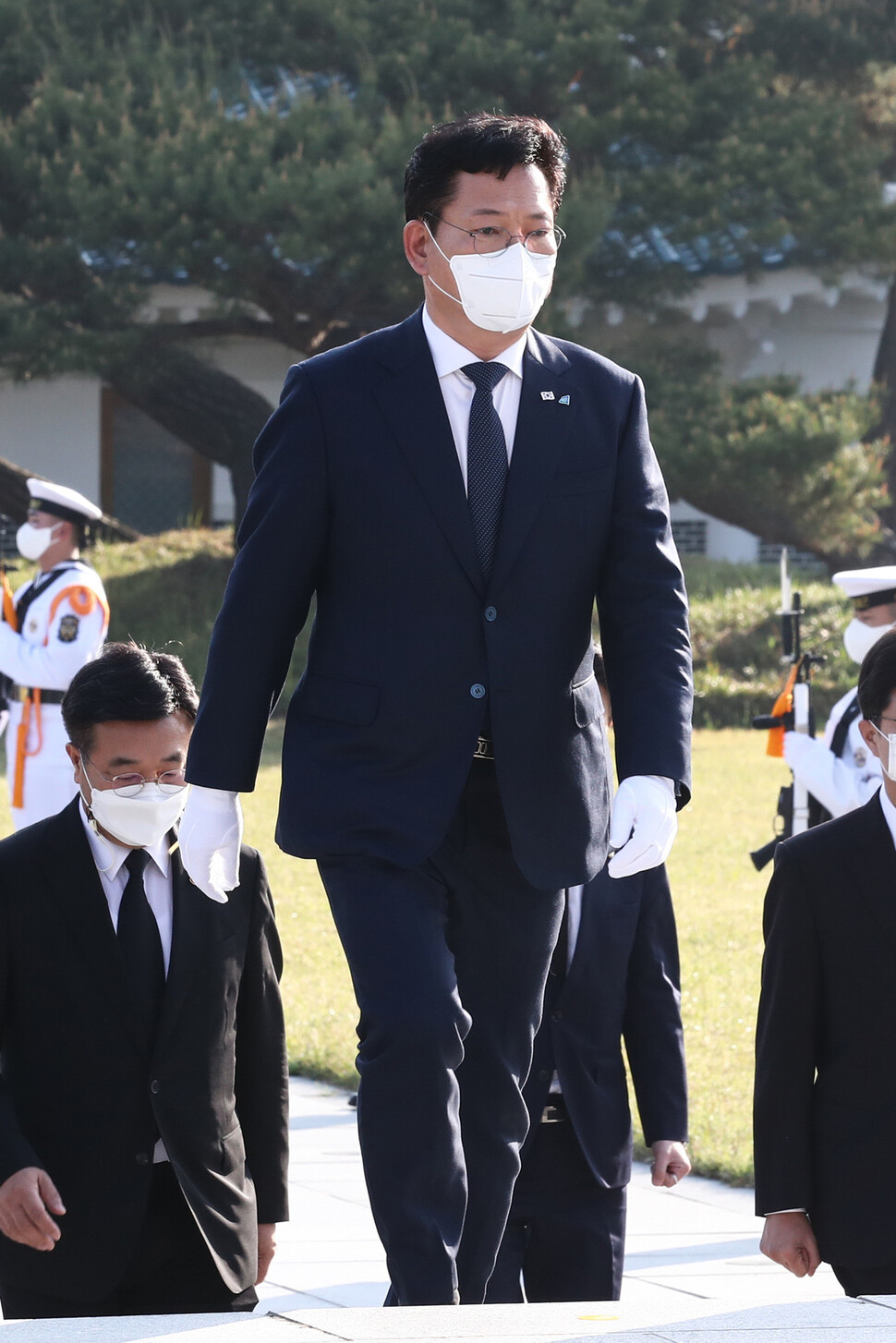 더불어민주당 송영길 새 대표가 3일 서울 동작구 국립서울현충원 현충탑에서 참배하고 있다. 연합뉴스