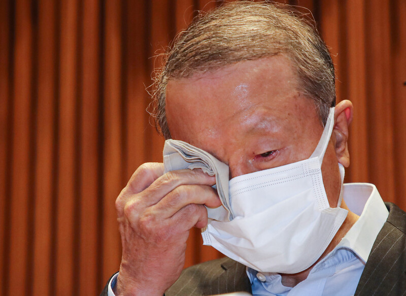 사퇴 발표하며 눈물 흘리는 홍원식 남양유업 회장