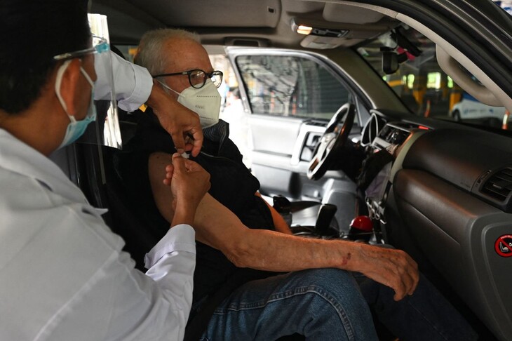 중남미 과테말라의 과테말라시에서 한 노인이 차 안에 탄 채 코로나19 백신을 맞고 있다. 과테말라/AFP 연합뉴스