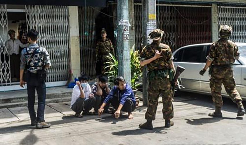 군경의 시위대 색출 과정에서 붙잡힌 양곤 시민들. [AFP=연합뉴스]