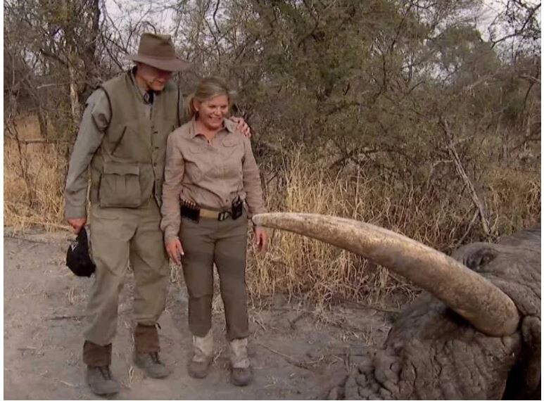 미국 전국총기협회(NRA) 회장인 웨인 라피에어와 부인이 지난 2013년 보츠와나에서 코끼리 사냥 도중 코끼를 사살하고는 기뻐하고 있다. 트레이스 /<뉴요커> 누리집 갈무리