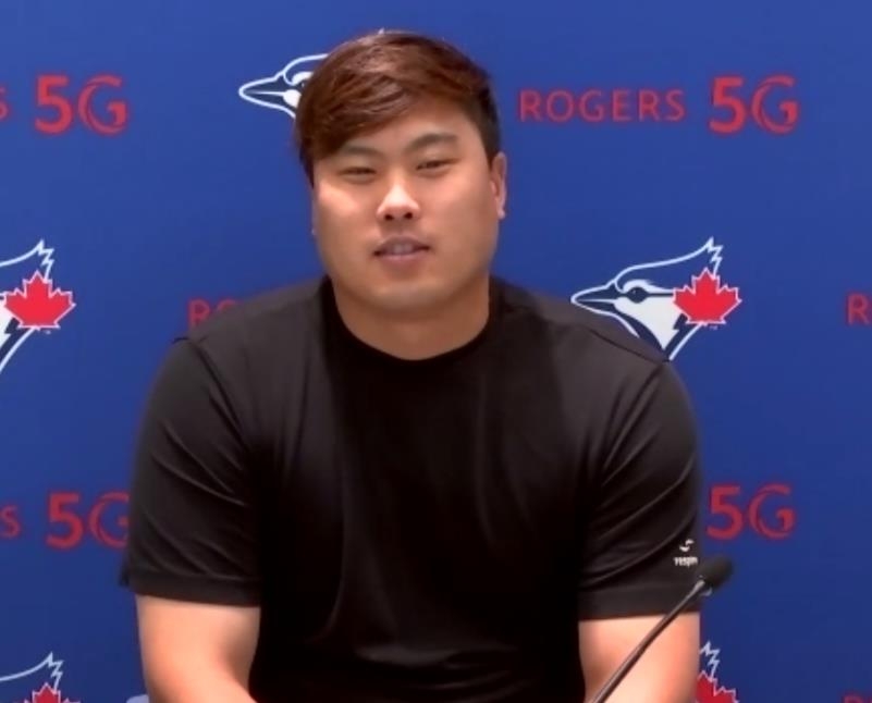 토론토 블루제이스 류현진이 12일 미국 조지아주 애틀랜타의 트루이스트파크에서 열린 애틀랜타 브레이브스와 원정경기를 마친 뒤 화상 인터뷰하고 있다. [MLB 화상인터뷰 캡처]