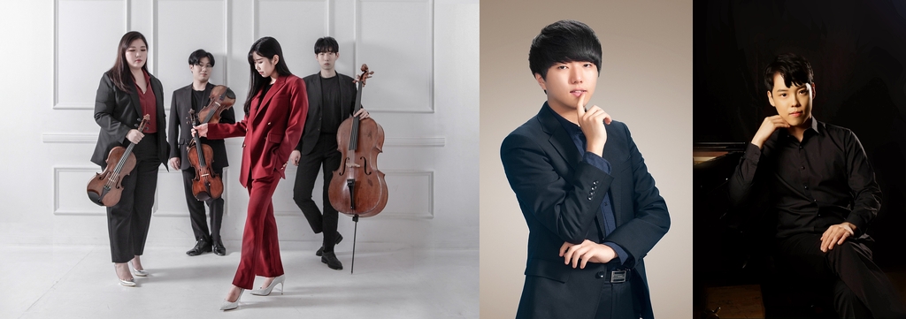 왼쪽부터 현악 사중주단 아레테 스트링 콰르텟, 피아니스트 이동하·이재영 [금호문화재단 및 이동하 제공]