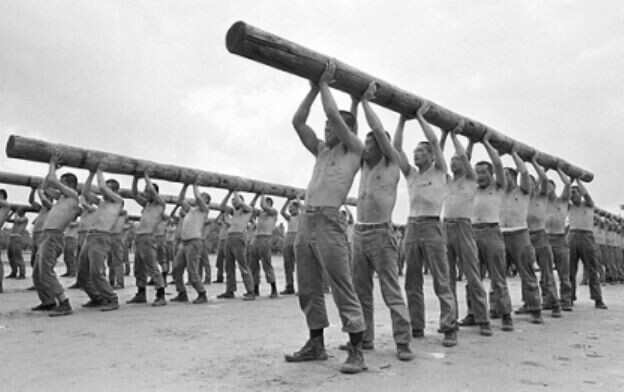 전두환 정권의 대표적 인권침해 사건으로 꼽히는 삼청교육대 인권유린 현장.