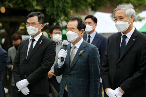 정 전 총리는 “광주항쟁 41년이 지났지만 반성하지 않은 무소불위의 특권계급 검찰과 수구언론이 한통속이 되어 ‘그들만의 수구특권층의 나라’를 지키기 위한 국민 기만극을 되풀이하고 있다”며 “광주항쟁은 아직 끝나지 않았다”고 했다. 아울러 그는 “오늘부터 ‘광주에서 봉하까지 검찰개혁·언론개혁 민주주의 대장정’을 시작한다”며 “앞서서 나가신 민주 영령들 앞에서 부끄럽지 않은 산 자가 되겠다”고 덧붙였다. 심우삼 기자