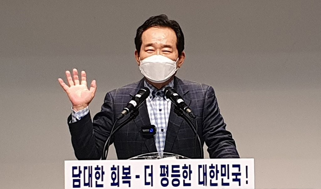 정세균 전 총리, 광주·전남서 2박3일 민심청취: 더불어민주당 대권주자인 정세균 전 국무총리가 5월 16일 오후 전남 여수시 여수세계박람회장 소회의실에서 시민간담회를 하고 있다.