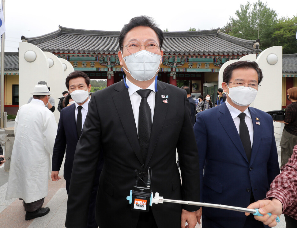 더불어민주당 송영길 대표가 18일 오전 광주 북구 국립 5·18 민주묘지에서 열린 제41주년 5·18 민주화운동 기념식에 참석하고 있다. 연합뉴스