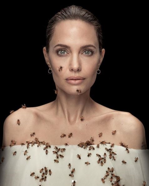 할리우드 배우 앤젤리나 졸리가 꿀벌 6만 마리에 뒤덮였다.