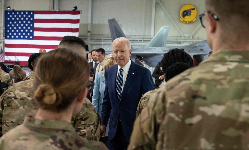현충일 앞두고 공군기지 찾은 바이든 대통령 [AFP=연합뉴스]