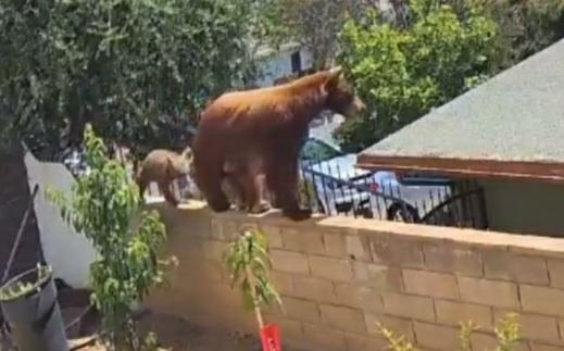 소셜미디어에 공유된 보안 카메라 영상을 보면 환한 대낮에 1.5m가량으로 추정되는 낮은 높이의 한 주택가 담장 위로 갈색 털을 가진 어미 곰 한 마리가 새끼 곰 두 마리와 어슬렁거리며 나타났다.