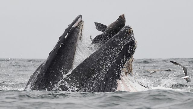 바다사자를 삼키는 혹등고래