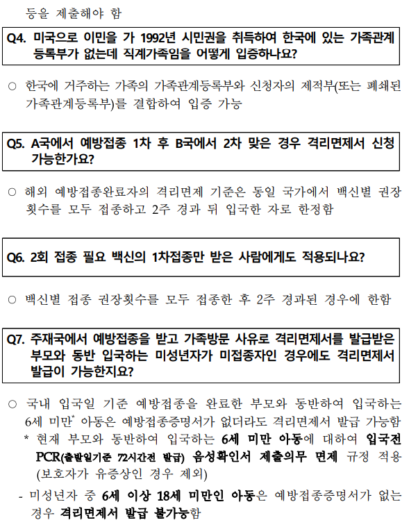 최윤희 뉴욕한인학부모협회 회장은 이날 성명을 내 "격리면제를 위한 가족 방문에 형제자매를 포함하지 않은 것은 미주 한인들의 사정을 고려하지 않은 미흡한 정책"이라면서 "백신 접종을 마친 후 이미 한국에 입국한 미주 한인들도 접종 기록을 제시하면 7월1일 전에라도 즉시 격리를 면제해달라"고 요청했다.