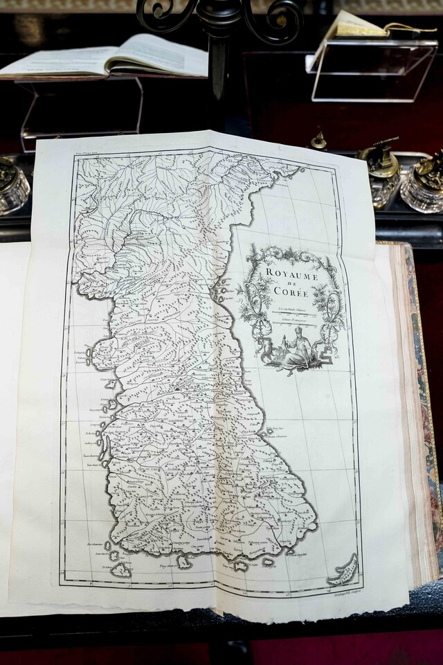 안헬 곤잘레스 도서관장은 지도를 보여주며 “1730년대 대한민국 한반도의 지도인데 한국인들에게 가장 와 닿는 기록이 아닐까 싶다”고 말했다. 18세기 프랑스의 지리학자이자 지도 제작자인 장 밥티스트 부르기뇽 당빌은 당시 중국의 실측지도인 ‘황여전람도’를 참고해 중국과 주변 지역을 나타낸 ‘신중국지도첩’을 발간했는데 ‘조선왕국전도’는 여기에 포함되어 있다. 조선왕국전도는 스페인 상원 도서관이 소장하고 있다.