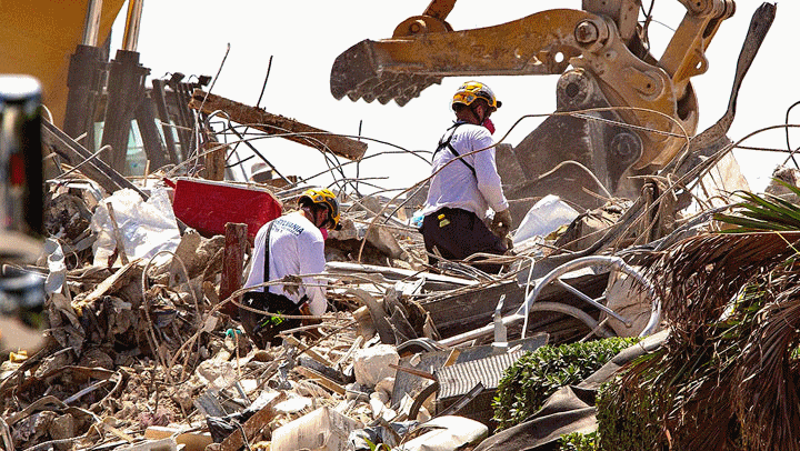 론 드샌티스 플로리다 주지사는 "구조대가 쉴 새 없이 작업을 하고 있다. 물리적으로도 아주 힘들고 감정적으로도 진 빠지는 일"이라고 했다.