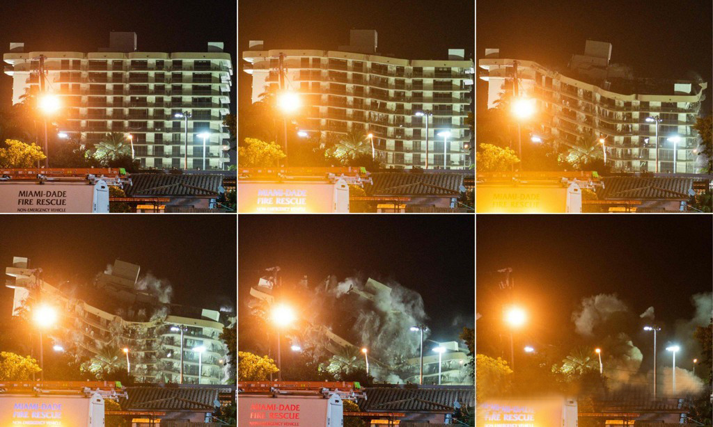 지난달 붕괴사고가 발생한 미국 플로리다주(州) 아파트가 4일 전면 철거됐다.