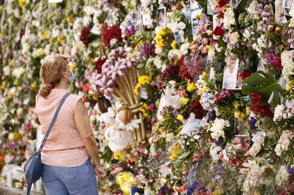 * 미국 플로리다주 아파트 붕괴 사고 현장 인근의 추모 장소에서 한 시민이 눈물을 훔치고 있다. [AFP=연합뉴스]
