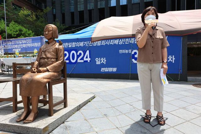 수요시위 현장을 직접 찾은 문춘하 렌나 수녀는 연대 발언에서 “30년간 1500차까지 지켜온 수요시위는 역사적 진실을 기억하고 새로운 미래를 희망하고 정의와 평화가 꿈틀대는 현장이었다”며 “(일본 정부가) 피해자 할머니의 요구인 전쟁 범죄 인정, 진정한 사과, 법적 배상을 받아들여 할머니들의 명예가 온전히 회복되도록 저희는 끝까지 이 자리에 함께하고자 한다”고 말했다.
