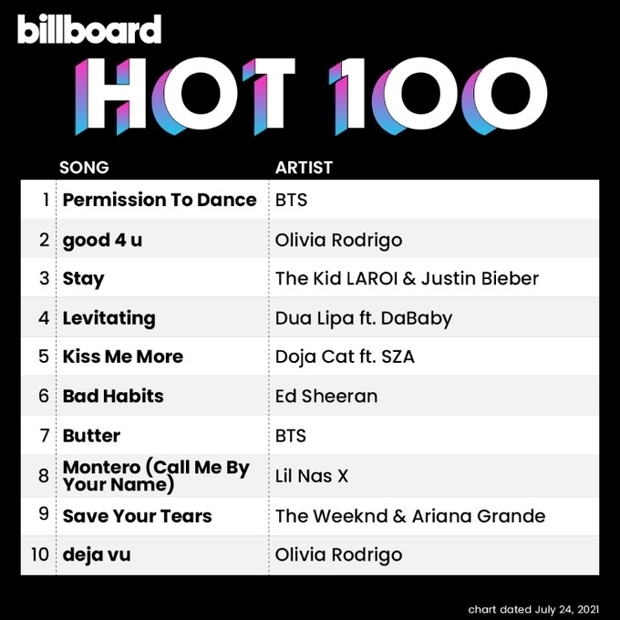 *빌보드 ‘핫 100’ 차트 1위에 오른 방탄소년단의 ‘퍼미션 투 댄스’.