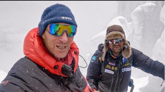 라조가 김홍빈 대장과 찍은 사진. 촬영 10분 뒤 김 대장이 절벽 밑으로 추락했다. [데스존프리라이드 인스타그램 캡처]