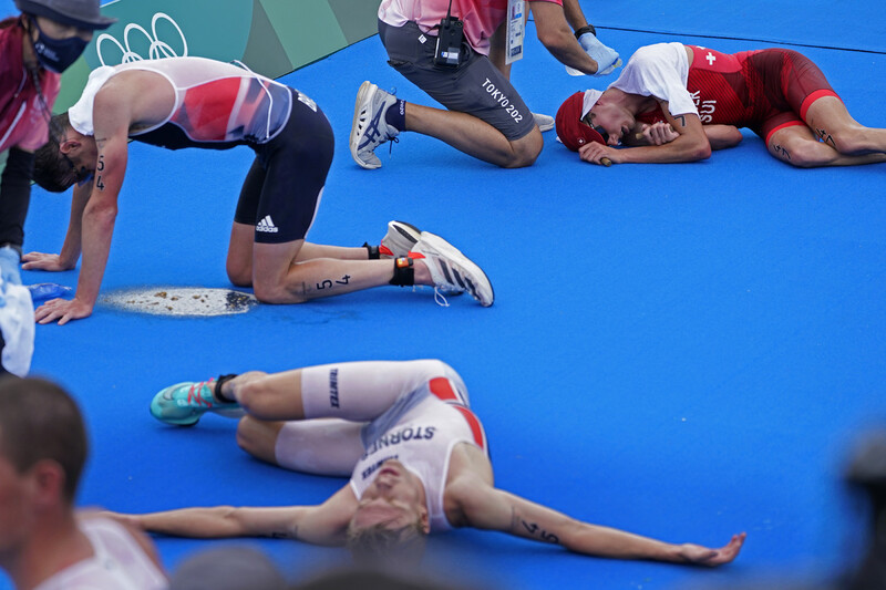 도쿄올림픽 트라이애슬론 남자부 개인전은 지난 26일 오전 6시30분 일본 도쿄 오다이바 해상공원에서 열렸다. 수영 1.5㎞, 사이클 40㎞, 달리기 10㎞를 연달아 소화해야 해 워낙 운동 강도가 높은 종목이긴 하다. 하지만 결승선을 통과한 선수들이 몸을 가누지 못한 채 바닥에 쓰러지고 일부는 구토하는 모습이 중계되면서 우려의 목소리가 커졌다.