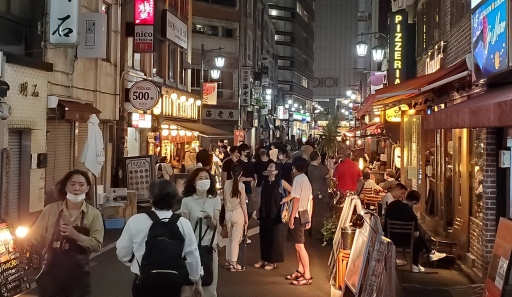 술 판매를 중단하라는 당국의 요청에도 아랑곳하지 않고 주류를 제공하는 신주쿠의 음식점에는 자리가 나기를 기다리는 손님들이 늘어섰고 늦은 시간까지 술잔을 기울이는 이들이 꽤 있었다.