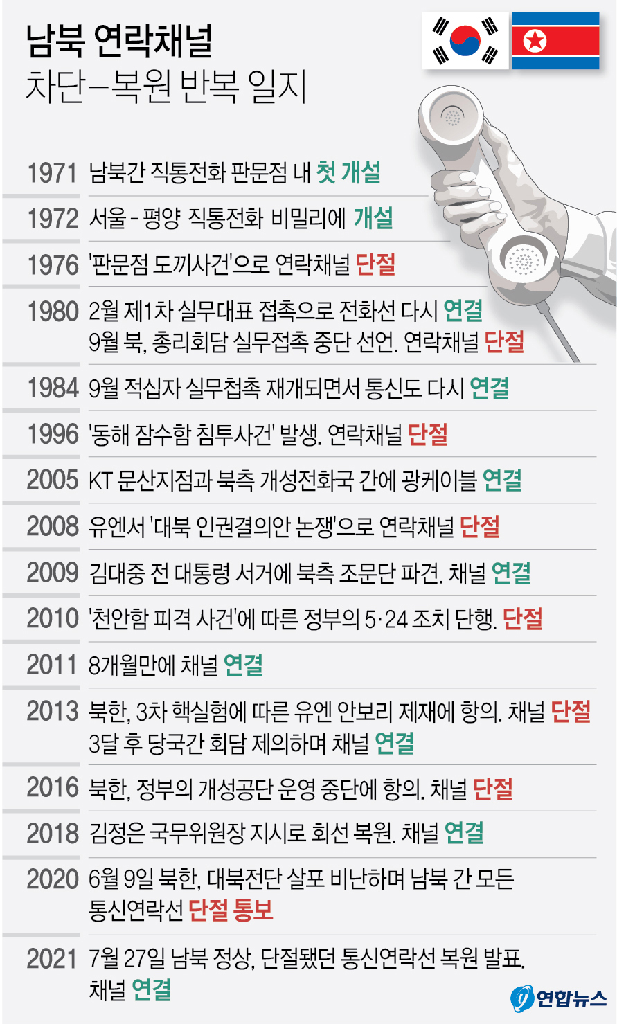 북, 남북직통연락선 복원 확인 …“신뢰회복 큰 걸음”