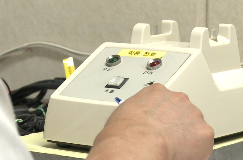 경기도 파주시 판문점 남북공동연락사무소에 설치된 남북 직통전화로 통일부 연락대표가 북쪽과 통화하는 모습. 통일부 제공