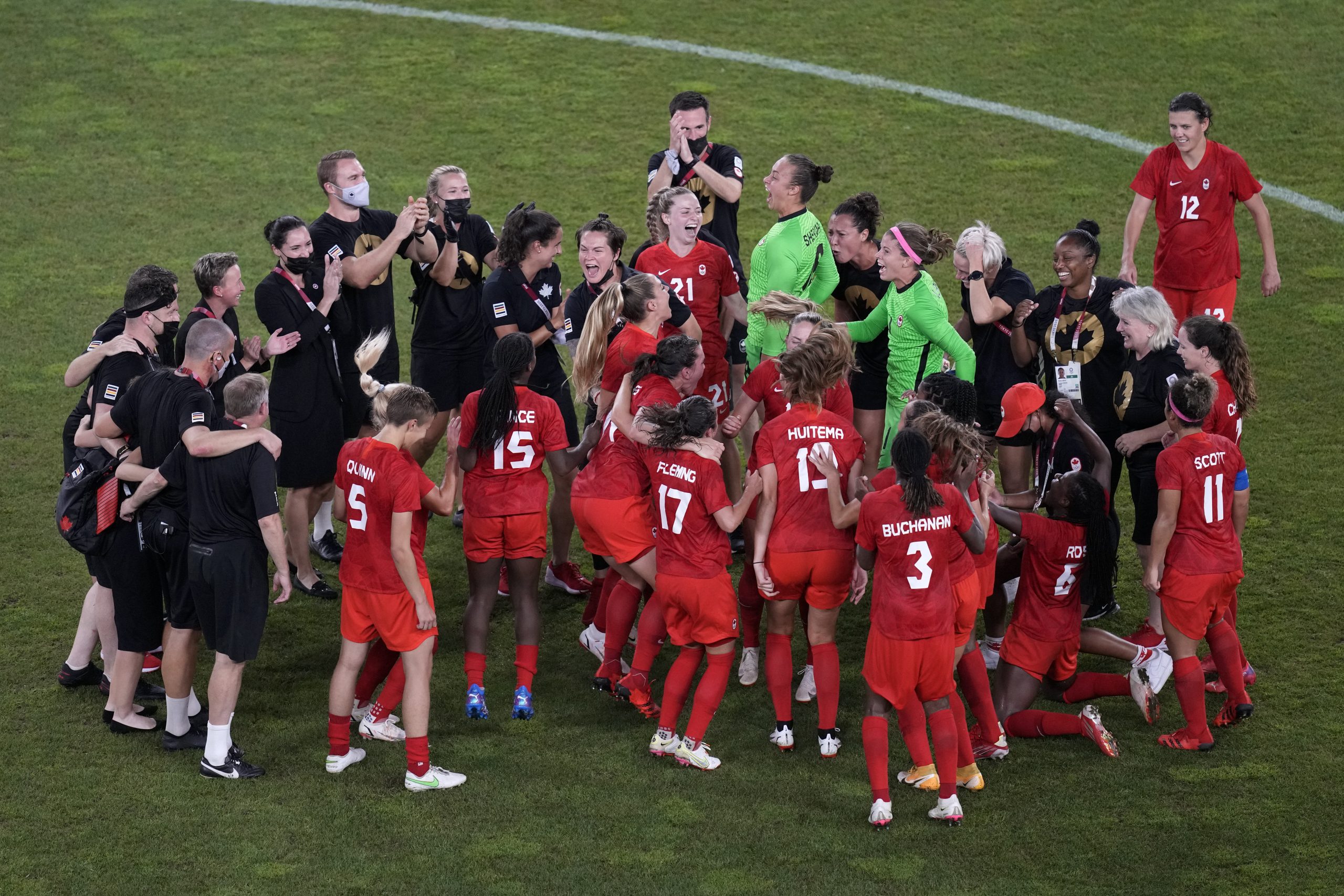 캐나다는 6일 일본 요코하마 경기장에서 열린 2020 도쿄 올림픽 여자축구 결승전에서 연장전 끝에 스웨덴을 페널티킥으로 3-2로 꺾고 금메달을 따냈다.