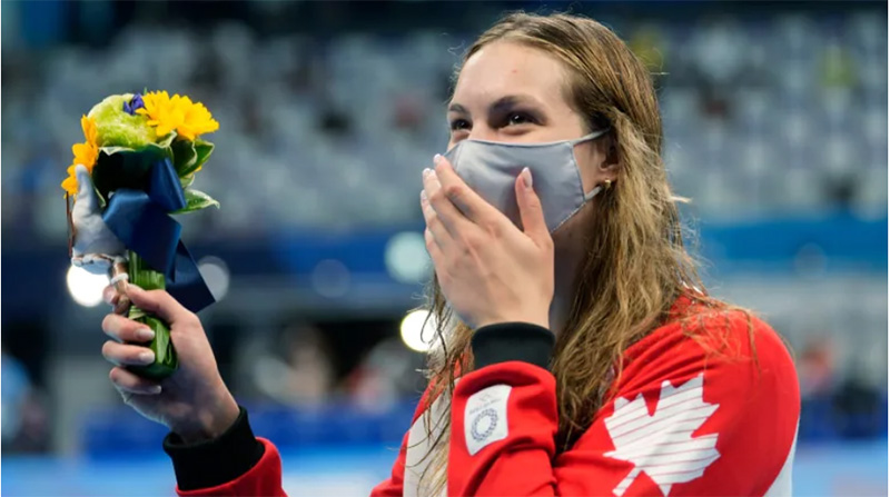 앞서 카일리 매스는 도쿄 올림픽 수영 여자 200m 배영에서 2위를 하며 캐나다에 두 번째 은메달을 안겼다. 에드몬튼의 마르코 아롭은 남자 100m 달리기 예선에서 1위를 기록했고, 800m에서도 예선 1위로 준결승에 진출했다.