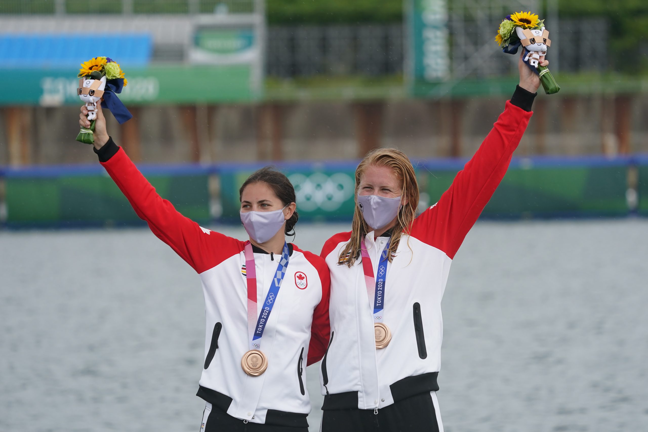로렌스 빈센트 라퐁테(오른쪽)와 케이티 빈센트가 8월7일 도쿄 올림픽 여자 카누 더블 500m 결승에서 동메달을 딴 후 기뻐하고 있다. [CANADIAN PRESS/ CityNews]