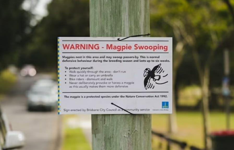 호주 공원의 까치 공격 경고문[호주 ABC방송 캡처]