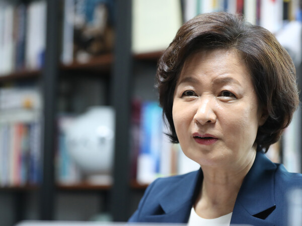 더불어민주당 대선 경선 예비후보인 추미애 전 법무부 장관이 지난 12일 서울 여의도에서 열린 연합뉴스와의 인터뷰에서 "분열은 곧 패배"라며 정권 재창출을 위한 내부 통합의 중요성을 역설하고 있다. 연합뉴스