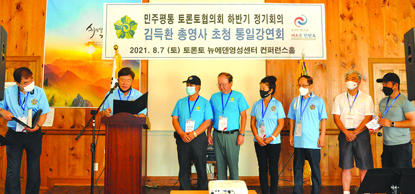 민주평통 토론토협의회(회장 김연수)가 지난 8월7일 킹시 인근에 있는 '뉴에덴 영성센터'에서 제19기 마지막 정기회의를 겸해 김득환 토론토총영사 초청 평화통일 강연회를 가졌다.