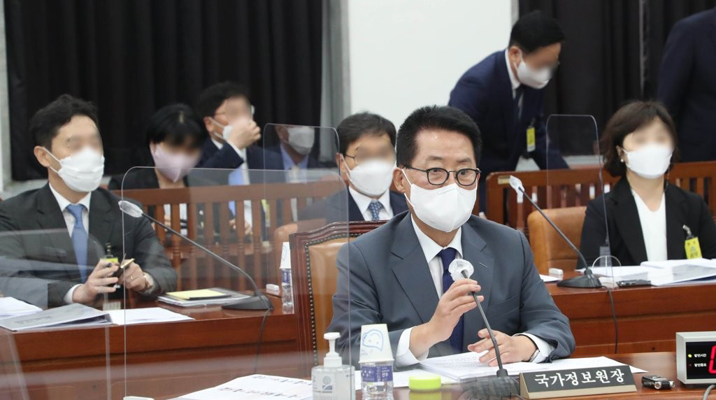 정보위 전체회의 출석한 박지원 국가정보원장= 정보위원회 전체회의가 24일 오후 서울 여의도 국회에서 박지원 국가정보원장이 출석한 가운데 열리고 있다.